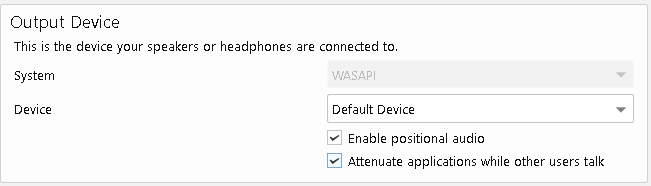 - You'll want to enable positional audio and Attenuate applications while other users talk.